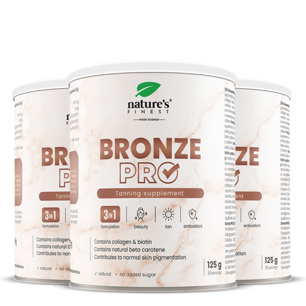 Grâce au mélange antioxydant de Bronze PRO, contenant de la vitamine C et de la vitamine E, vous pouvez protéger vos cellules contre les lésions, prévenir les signes prématurés de vieillissement et préserver l’apparence jeune de votre peau.