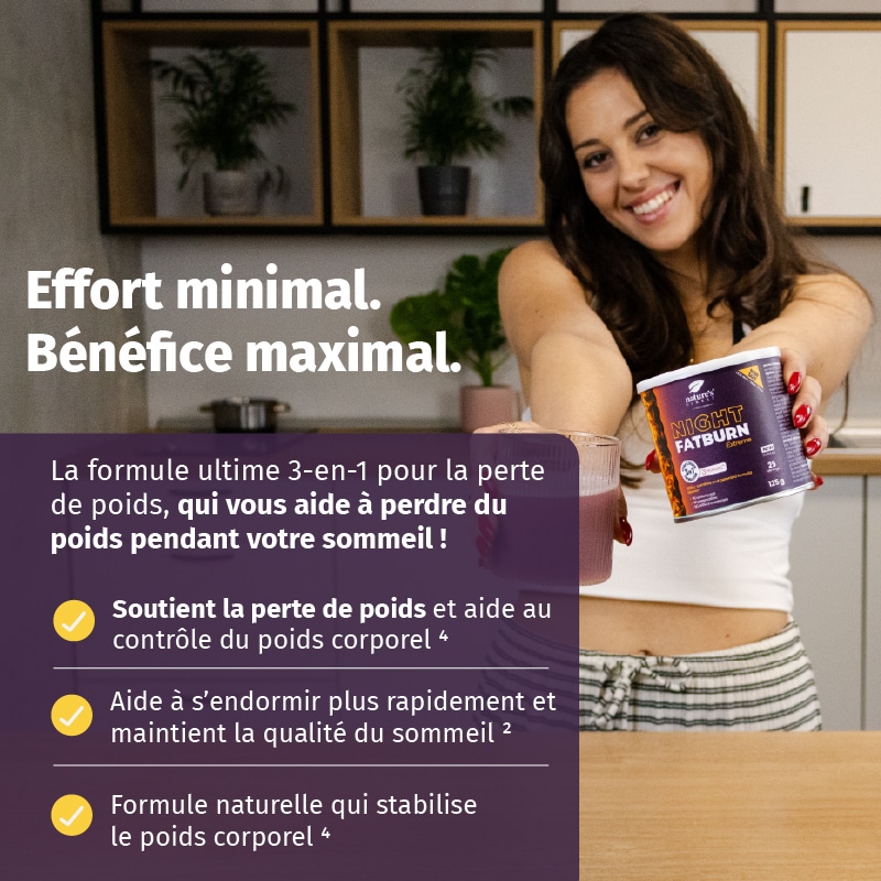 Night FatBurn Extreme est conçu pour aider à perfectionner votre silhouette, soutenir la perte de poids 4 et maintenir une qualité de sommeil normale. 2