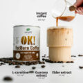 Mélangez 10 g (1 cuillère à soupe) de préparation OK!FatBurn Coffee dans 150 ml d’eau chaude ou de lait (végétal).