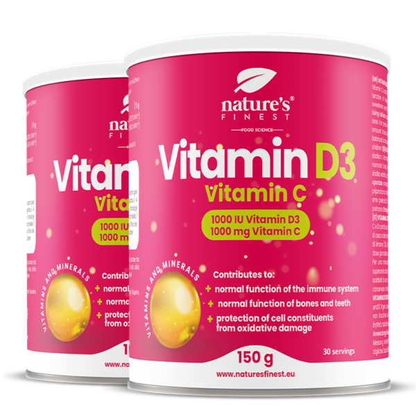 Vitamine D3 + Vitamine C en poudre garantit une meilleure absorption, qui commence dès que les vitamines entrent en contact avec la salive. Le rôle principal de la vitamine D est de maintenir l’homéostasie et une concentration constante de calcium et de phosphate dans le plasma, et la vitamine C agit comme un puissant antioxydant.